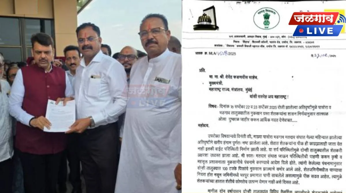 पाचोरा-भडगाव तालुक्यांमध्ये ओला दुष्काळ जाहीर करून तिप्पट मदत द्या; आ. किशोर पाटलांची मुख्यमंत्र्यांकडे मागणी