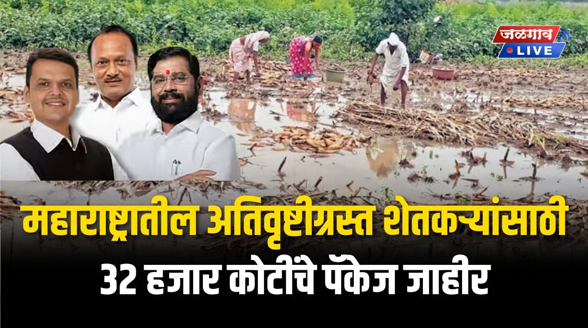 महाराष्ट्रातील अतिवृष्टीग्रस्त शेतकऱ्यांसाठी मदतीची घोषणा; तब्बल ३२ हजार कोटींचे पॅकेज जाहीर